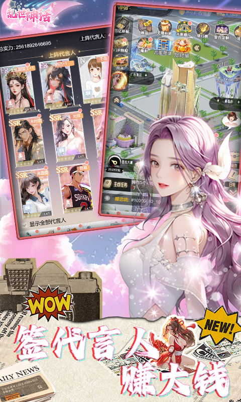 你将扮演从神话世界重生成广告小助理的主角,在现代广告业从底层逆袭。凭借独特魅力与超卓谋略,结识各路才华横溢的精英、风格迥异的网红达人,将他们招致麾下成为“代言人”,为你的广告事业添砖加瓦,成为广告行业的神话。游戏开局福利爆棚,创业资金、稀有道具一键到手,还有贴心美女助手帮衬,豪车,美女送不停,老板~就差你啦!