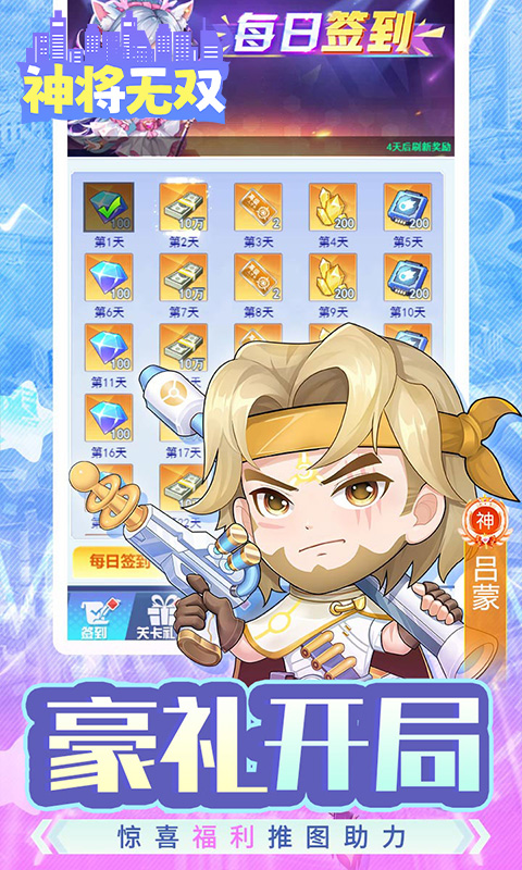 《神将无双(0.05折无限自选资源)》是一款非典型类的现代大乱斗武将卡牌游戏。在游戏里所有的朝代人才都会变成现代职业人才,玩家可以通过招聘来将他们收入麾下成为自己的职员,并带着自己组建好的人才队伍去闯荡游历四方。在不同的城市会遇到不同的机遇、艳遇、困难等等,最后是功成名就还是遗恨落败都在玩家的选择。
